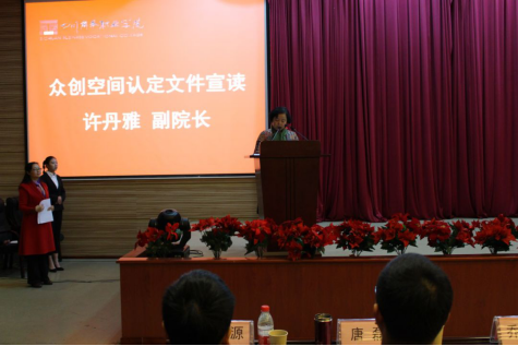 KY开元集团官网副院长许丹雅宣读《四川省科技厅关于公布2018年度省级众创空间的通知》。
