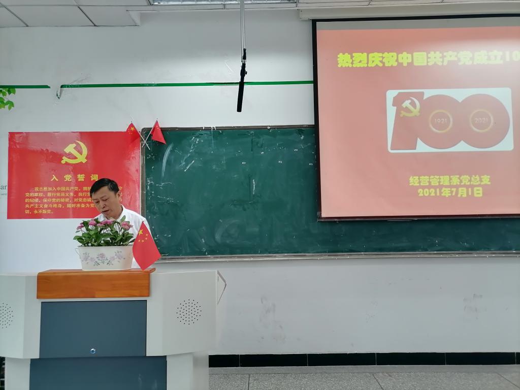 7月1日下午,经营管理系举行以“筑梦百年奋斗路 启航伟大新征程”为主题的庆祝建党100周年主题党日活动,33名教师党员和5名学生党员参加,共同重温入党誓词。