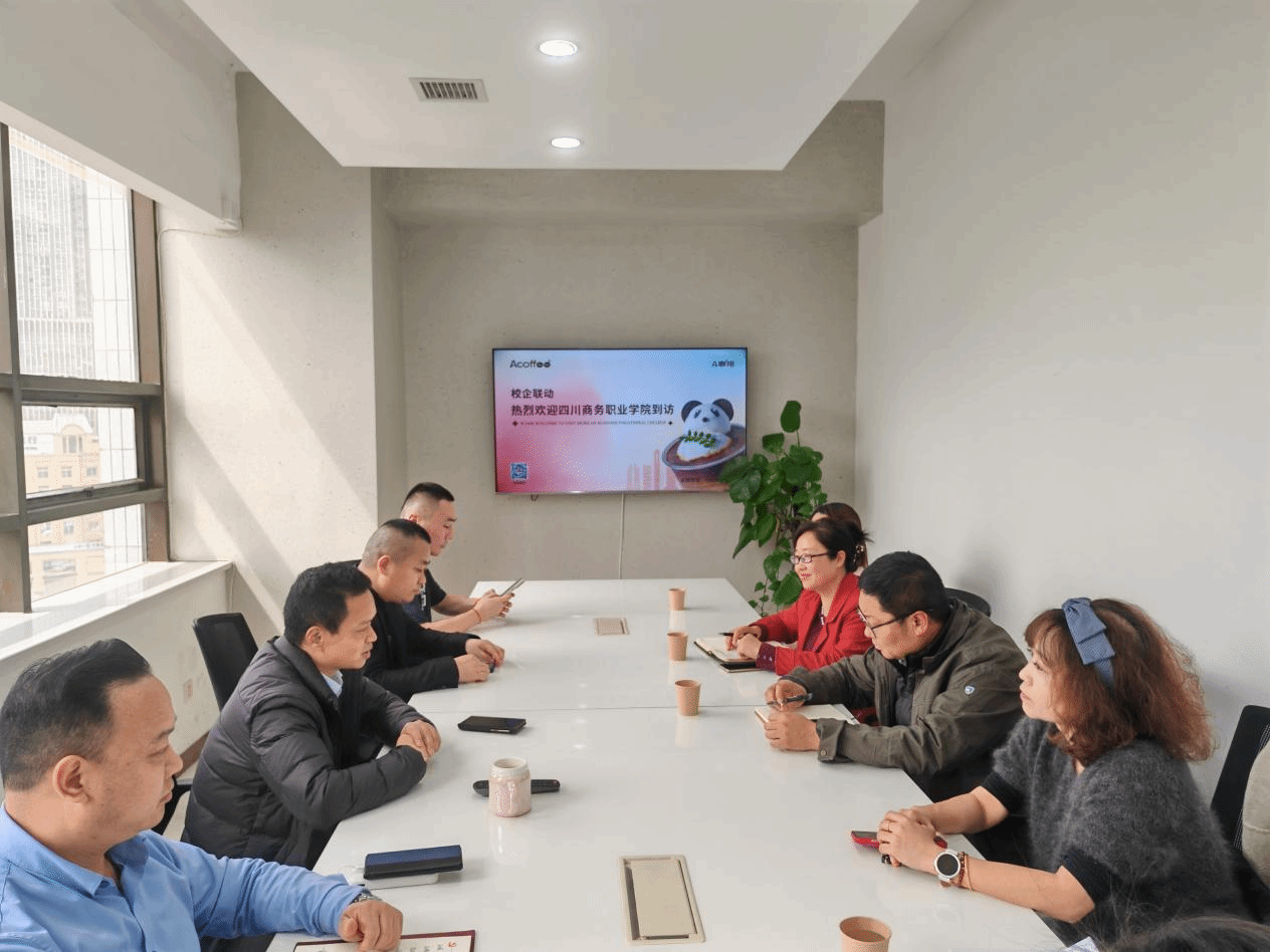 交流会上,A咖啡创始人董事长陈晓程介绍了公司创业的背景、发展历程、主营业务、发展机遇、人才需求以及企业在咖啡赛道的发展规划,分享了他们在创业时期的宝贵经验和见解。经营管理系主任王琦详细介绍了系部的专业设置、师资力量以及毕业生就业情况,杨洪书记对企业的成就表示高度认同,期待企业为实习生提供更多的岗位和实习机会,共建深度融合的长效机制,携手搭建良好的沟通交流平台。