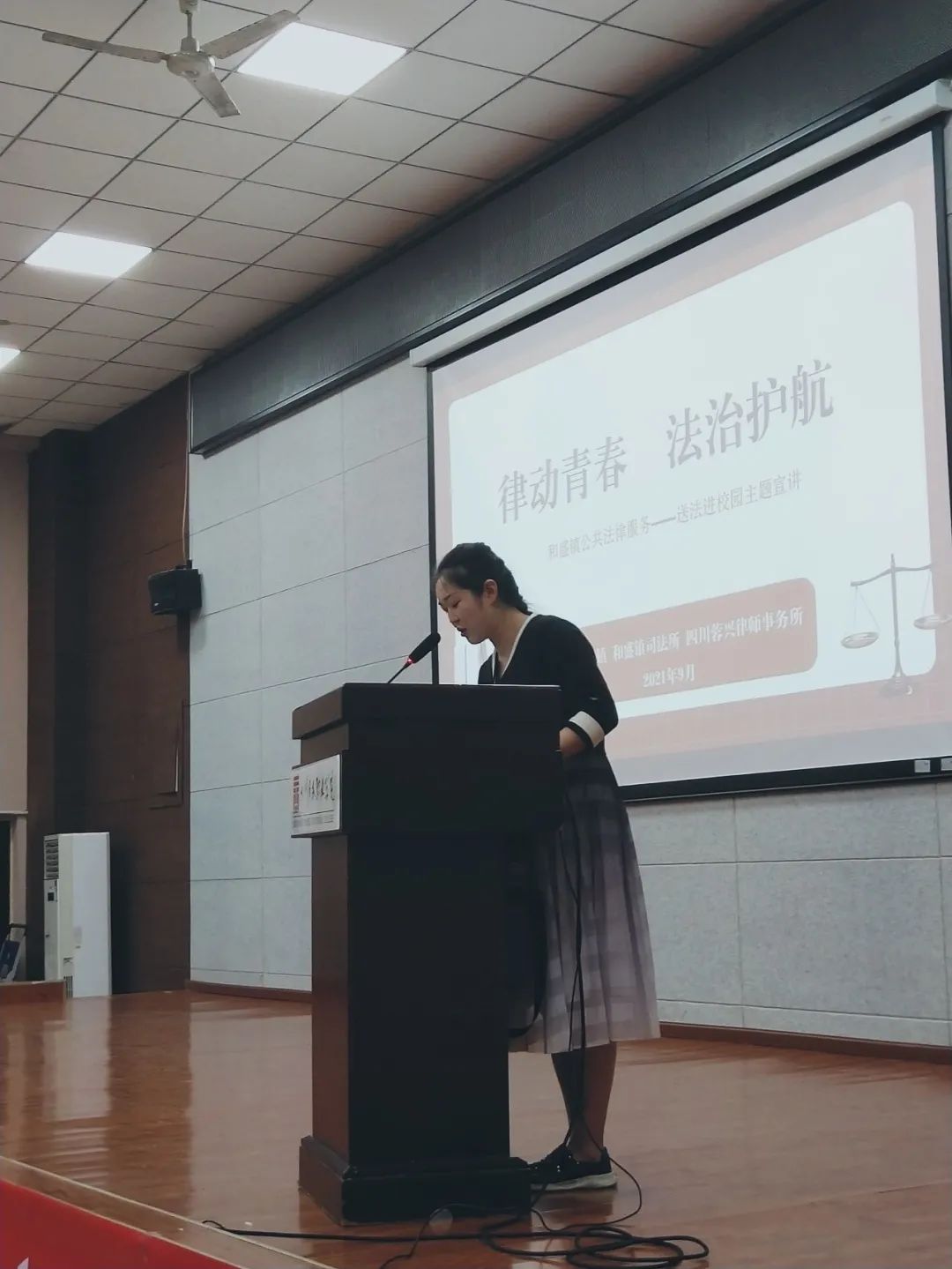 2021年9月27日晚18:30-19:30,由KY开元集团官网院团委主办、经济贸易系承办的“律动青春,法制护航--送法进校园”主题宣讲活动在KY开元集团官网和盛校区第二学术报告厅顺利开展。此次宣讲活动由和盛镇司法所工作人员和四川蓉兴律师事务所律师主讲。