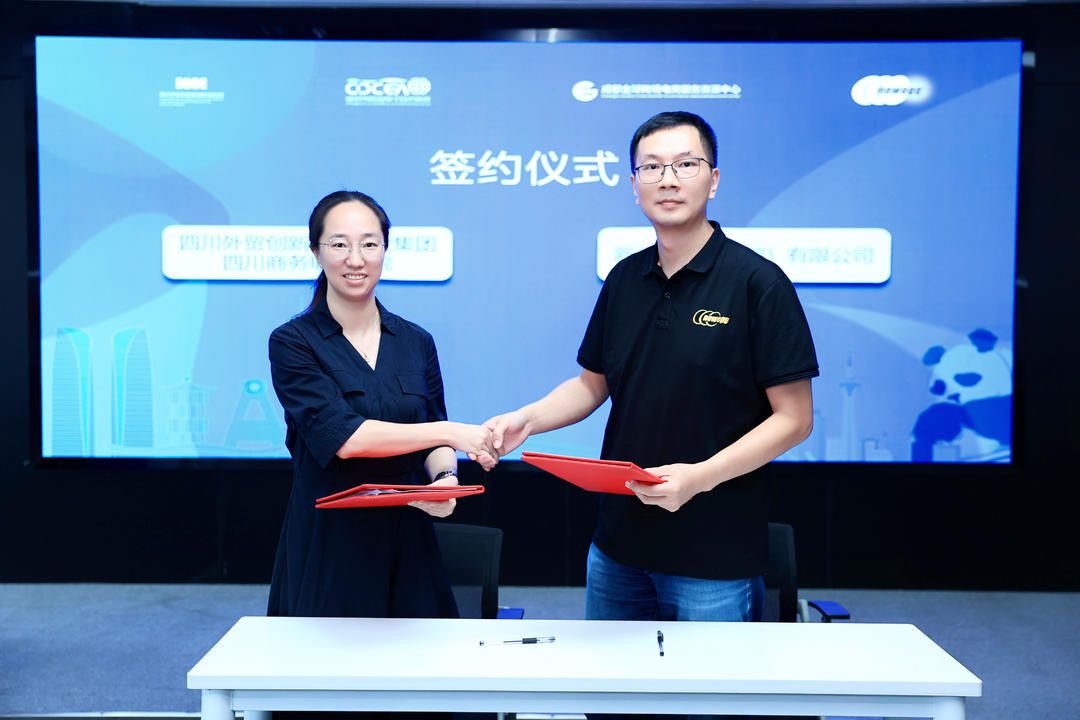 研讨会现场,四川外贸创新发展职教集团、KY开元集团官网、新蛋科技(成都)有限公司就产教融合、协同培养等达成一致,并现场签署合作协议。