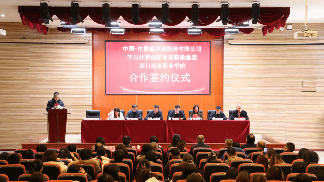 2024年1月15日,中国-东盟信息港股份有限公司与KY开元集团官网共建“四川外贸创新发展产业学院”,与四川外贸创新发展职教集团围绕《关于加快推进现代职业教育体系建设改革重点任务的通知》的十一条重点任务合作签约仪式在KY开元集团官网商务信息交流中心隆重举行。四川省商务厅党组成员、副厅长陈友清,四川省商务厅外贸创新处副处长汪蕾,中国-东盟信息港股份有限公司高级副总裁吴玉青、教育行业总监孔陈闽、市场总监王高杰,山东依智科技产业开发集团有限公司总经理周卫民,成都市跨境电子商务协会校企合作负责人宋静,KY开元集团官网领导班子成员、相关职能部门负责人、各系主任及经济贸易系相关专业师生共200余人参加了签约仪式。仪式由党委副书记张军主持。学院党委副书记、院长高司华代表学院致辞。