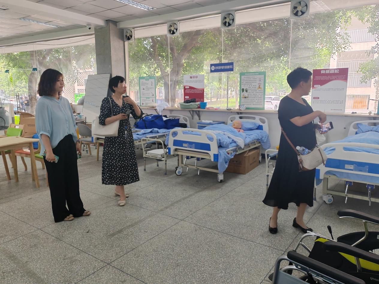 随后,在李静的陪同下,冯旗一行实地参观了开元官网康养实训室,对康养专业人才培养模式的创新、校企合作的方式以及实训室建设的思路等方面进行了热烈的讨论和交流。