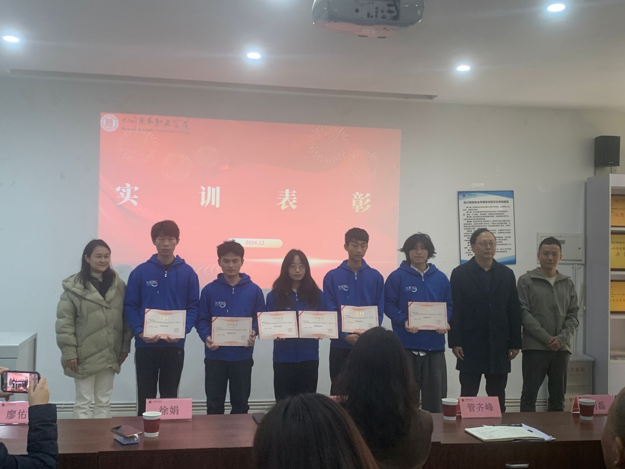 会议对在此次实训中表现突出的同学进行了表彰,颁发了荣誉证书。