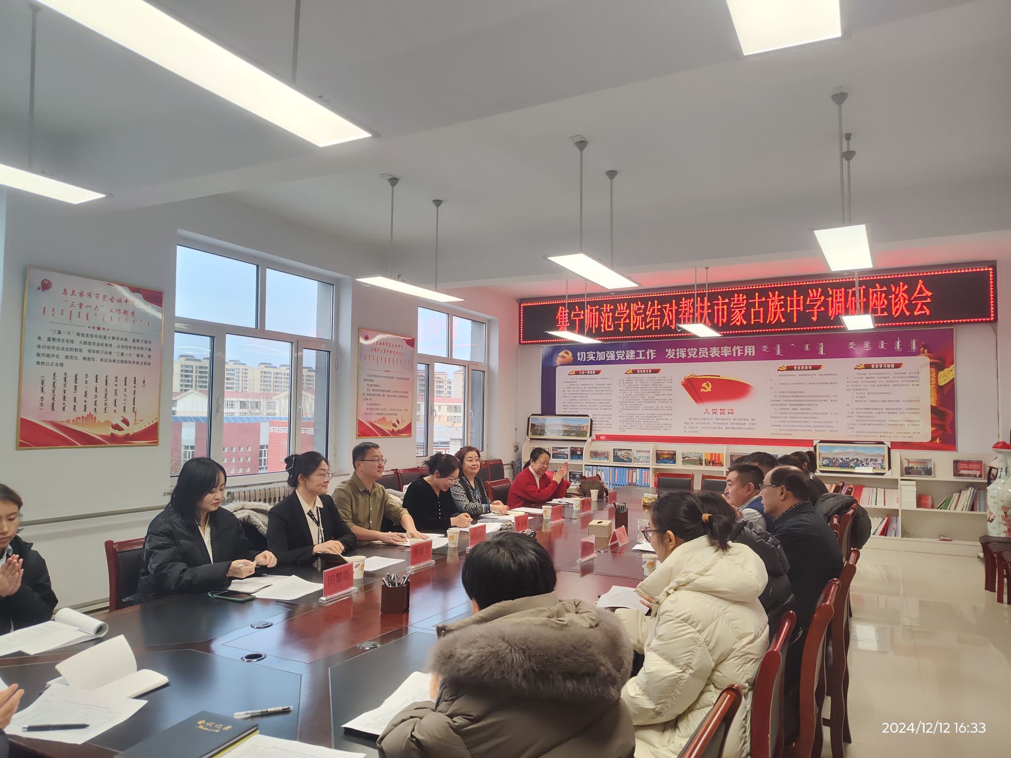 市蒙古族中学副校长好斯白音、教导主任格日乐图和帮扶教师,今年会继续教育学院院长侯素馨、副院长云利英、办公室副主任任建军,物理与电子信息工程学院院长呼和满都拉、石墨烯研究院副院长田慧英,生命科学与技术学院生物科学系主任贺番、外国语学院乔晋芳参加了会议。