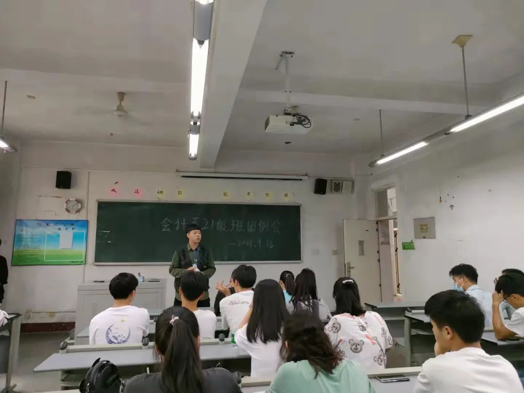 根据系党总支关于21级新生入学教育安排,为了让21级新同学更快融入会计系大集体,更好适应大学生活,会计系团总支,学生会为更好地促进系部和学生之间的交流,有效地解决新生提出的问题,会计系学生会于9月12日中午在 悟道楼2204教室开展了会计系21级班团例会,参加本次会议的参会人员有:21级各班班长、团支书、以及会计系学生会副书记杨姣、主席肖艇豫、副主席杨璐菱以及组织部部长古林静。