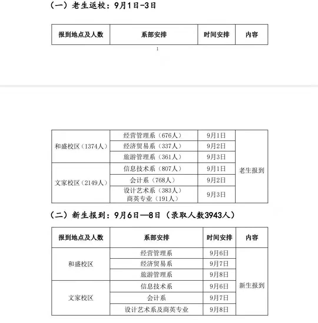 2、会计系老生返校时间为:9月2日
