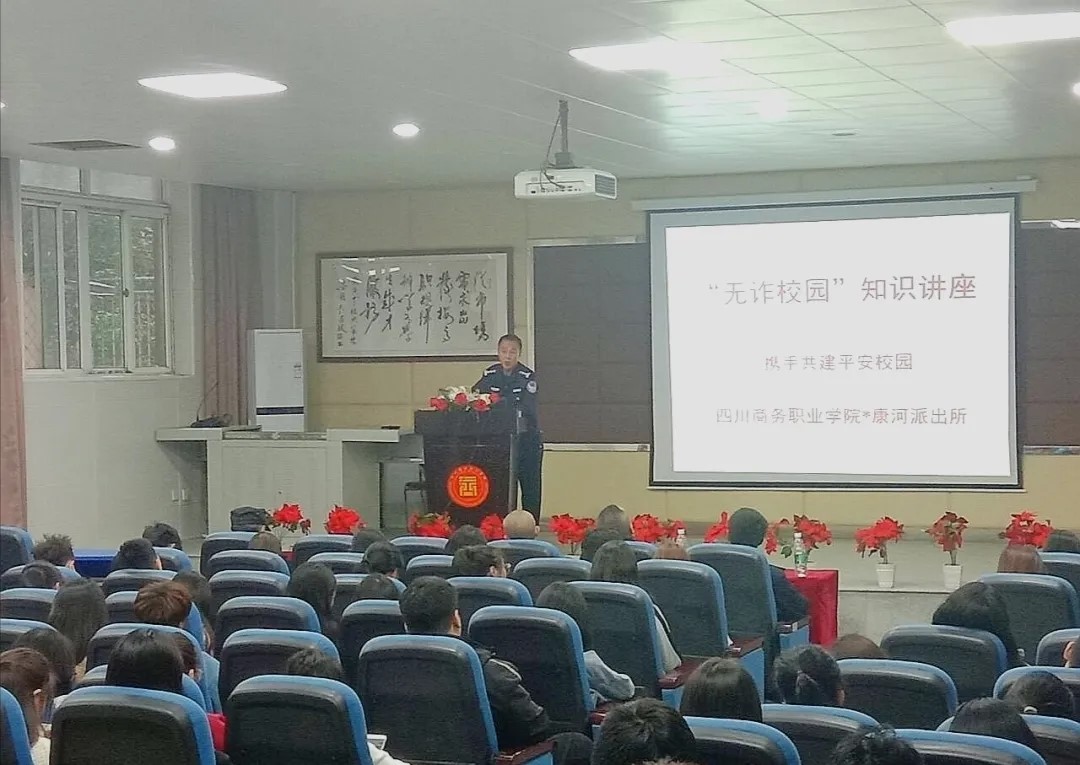 长期以来,诈骗集团侵害的不单单只是某个个体,而是整个社会群体。不仅对群众的钱财造成伤害,还会破坏整个社会的稳定秩序和安定环境。对诈骗集团必须坚决“亮剑”、果断出击。10月29日下午5点30分,康河派出所的周涛警官在KY开元集团官网学术报告厅为KY开元集团官网会计系的同学们宣传防诈骗知识。
