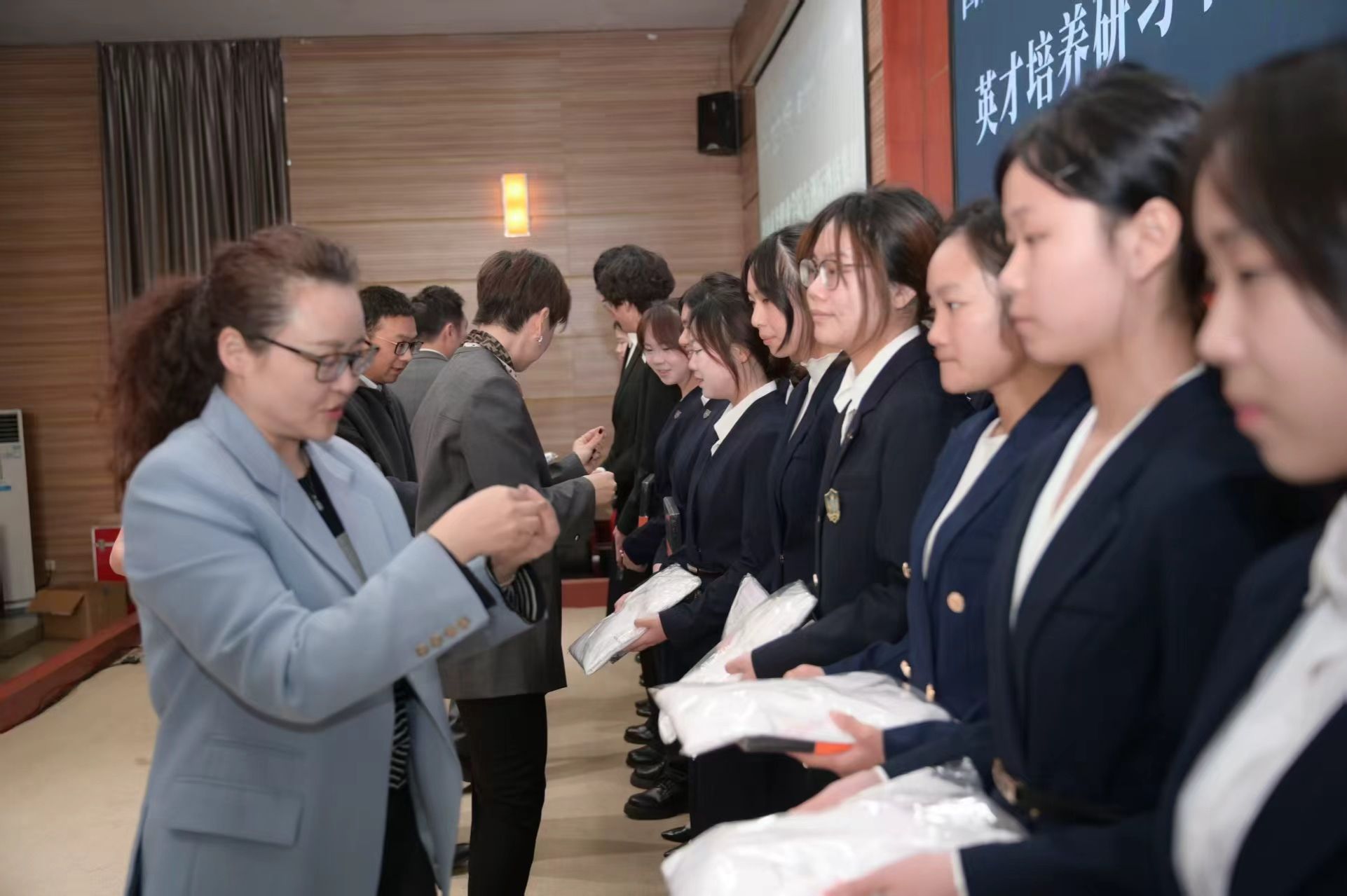 洲际酒店集团大中华区校企关系及菁英职业负责人唐晓红以视频连线方式,详细介绍了洲际酒店集团英才培养研习中心项目。学生代表谢雨鑫分享了自己加入洲际“英才班”班的感悟和对未来的展望。洲际酒店集团代表为英才班学生佩戴洲际专属铭牌,并发放开班纪念礼物。