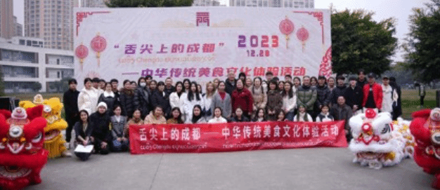 大家品尝了麻辣鸡、麻婆豆腐糖醋排骨等经典川菜,回味无穷。通过品尝川菜,他们不仅领略到了中国饮食文化的博大精深,也增进了对中华美食的了解和欣赏。最后,老师、留学生和中国学生分别表演了节目,将活动推向高潮。