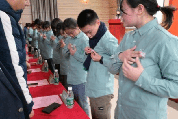 在开班仪式中还进行了校企师资互聘、现代学徒制班同学佩戴工牌等活动,李玉代表现代学徒制班的全体同学承诺:认真学习,深入思考,联系实际,真正使学习成果转化为将来指导工作实践的推动力,为自己积累宝贵的人生财富。