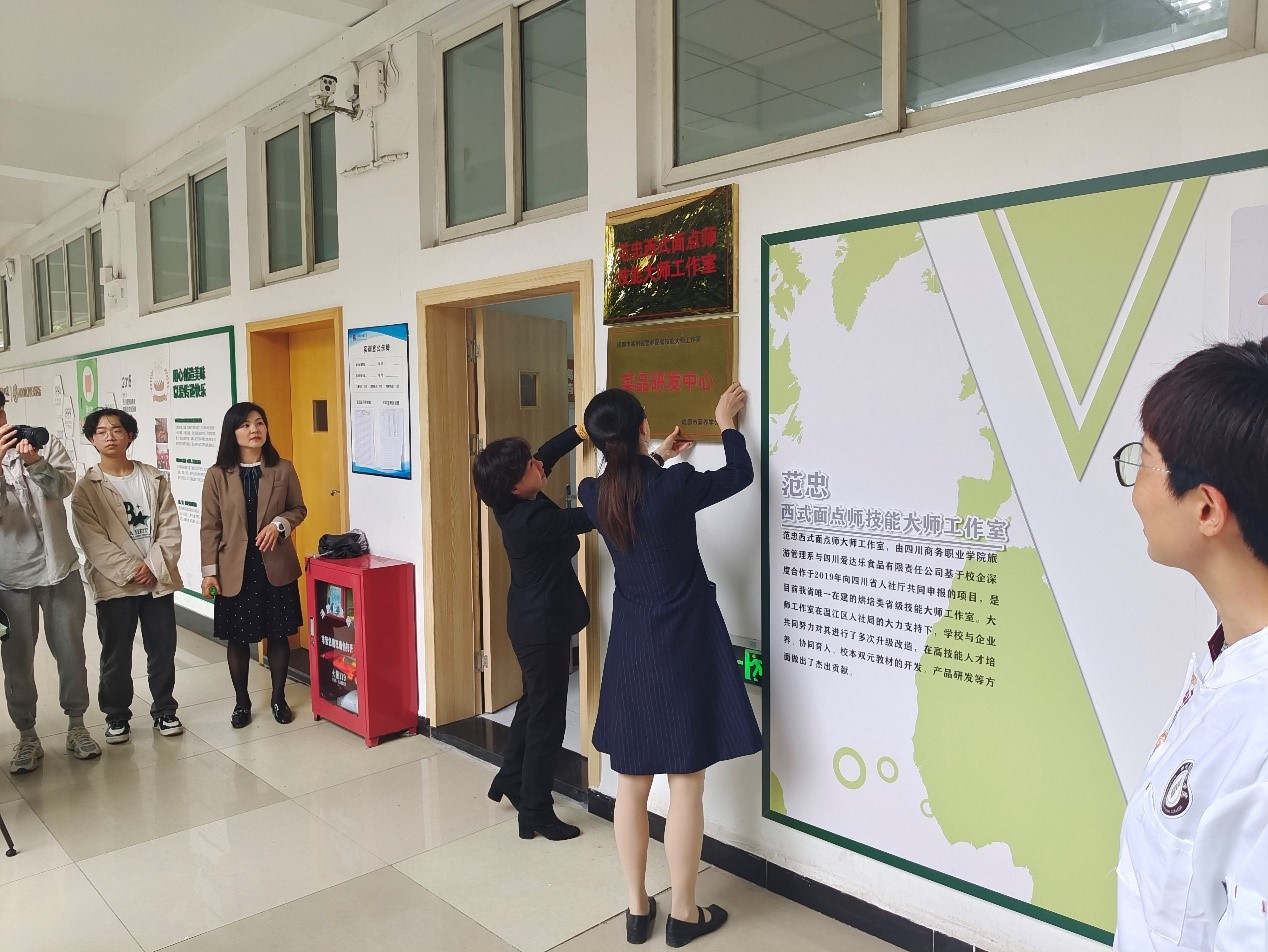 议程的最后一项是康璐副院长和张凤铃副会长共同为易树敏营养配餐技能大师工作室挂牌。本次授牌仪式将进一步推动学院技术创新、科研攻关、项目建设等方面的发展,培养更多更优质的高技能营养配餐人才,也让营养配餐学子们有信心在新的起点上,创造更加辉煌的成果。