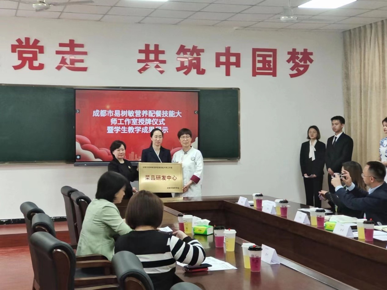 活动伊始,学院副院长康璐致辞,对易树敏营养配餐技能大师工作室表示肯定,她坚信此次与高校教师和企业大师合作建立的大师工作室将实现双方的资源共享、优势互补,也将帮助营养配餐学子树立起人生的目标,向着辉煌的未来迈出坚定的步伐。随后,成都市营养学会副会长张凤铃发言,她表示此次活动为发挥名师带徒提供了一条极为有效的途径,为高技能人才参与技术攻关和技能成果展示提供了平台。