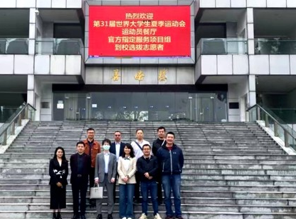 4月14日,第31届世界大学生夏季运会运动员餐厅服务志愿者洽谈会召开,会议由旅游管理系党总支书记陈根元主持,系主任张莉、副主任沈超、院团委书记张家林及大运会运动员餐厅官方指定服务项目组王进一行参与座谈。