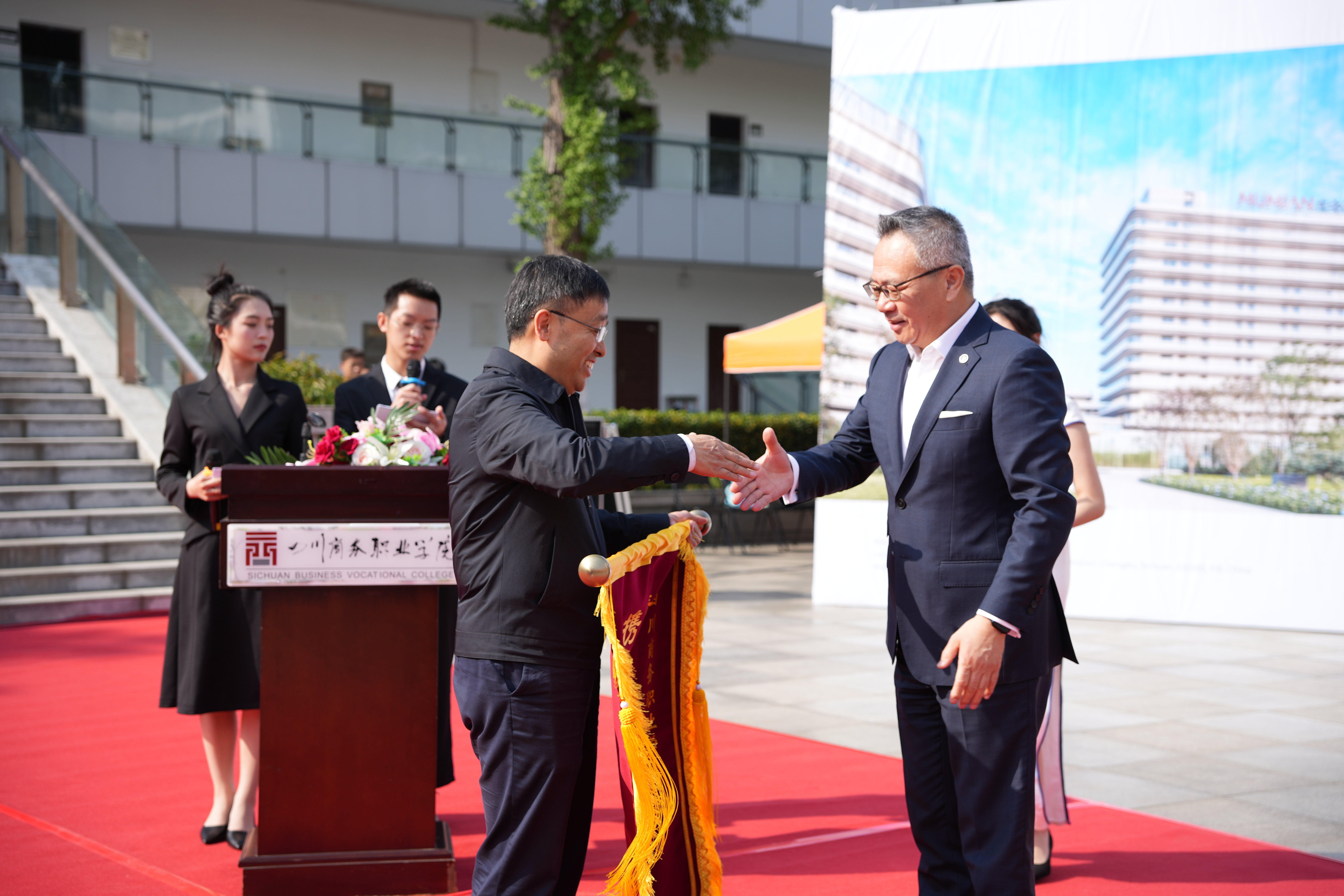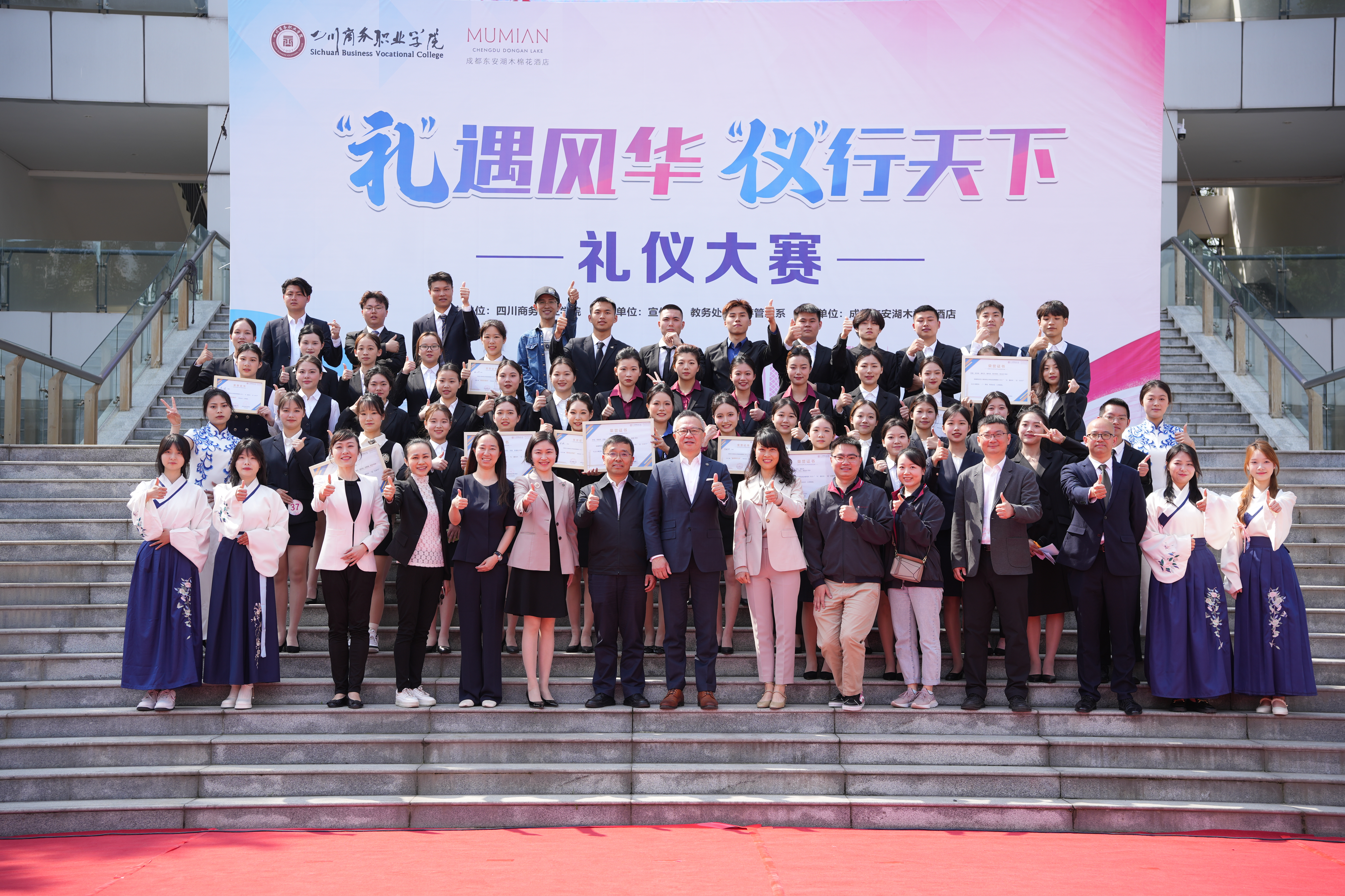 4月27日,由学院主办,旅游管理系联合学院教务处承办,成都东安湖木棉花酒店协办的第二届“‘礼’遇风华‘仪’行天下”礼仪大赛在振华广场举行。学院党委副书记、院长高司华,副院长康璐莅临现场观看指导,教务处领导、旅游管理系领导、旅游管理系师生代表和成都东安湖木棉花酒店代表参加活动。