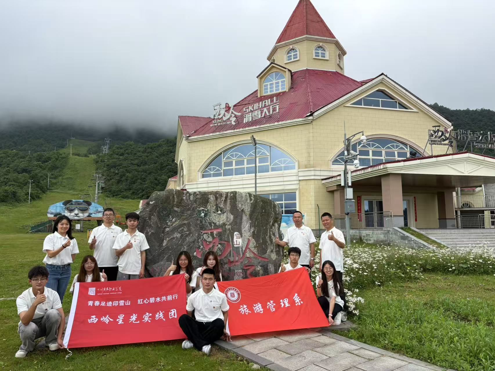 6月30日,旅游管理系西岭星光实践团一行15人抵达西岭雪山,为期三天的“三下乡”社会实践正式拉开帷幕。在系党总支书记陈根元、团总支书记车洁以及教师党员冷放、兰一天、郝灿、王惠琼、刘湘的带领下,这支由7名教师与8名学生团员组成的队伍,开启了以《叩问·传承》为主题的首日实践。叩问雪山:专业调研锚定服务提升起点实践伊始,紧扣“叩问”主题,团员们迅速行动,将课堂理论转化为实践动能。他们深入景区各个角落,怀揣专业问卷,...