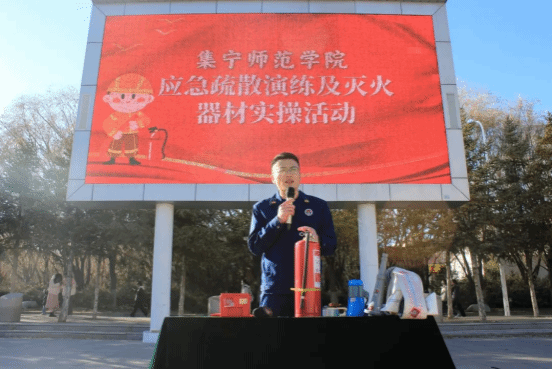 为积极响应全国消防宣传月“全民消防、生命至上”的主题号召,进一步提升今年会全体师生员工的消防安全意识,应对突发事件的预防和处置能力,今年会于11月13日在逸夫楼前广场开展了2025级新生消防安全知识及应急疏散演练活动。校党委委员、副校长张秀文出席活动并讲话。乌兰察布市消防支队林伟,校园安全管理处全体人员,驻校民警及2025级新生参加活动。