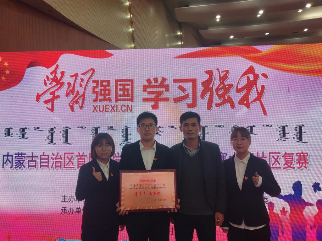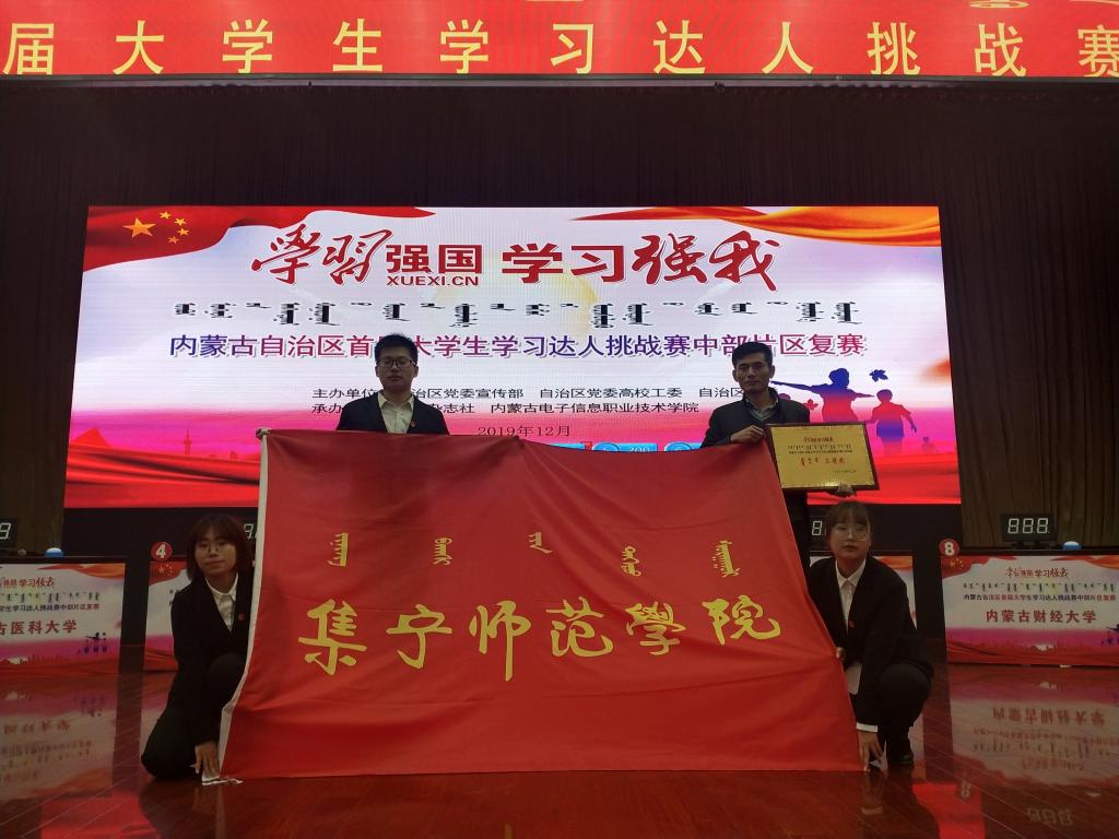 12月5日,由自治区党委宣传部、高校工委、团委、实践杂志社联合组织开展的内蒙古自治区第二届大学生文化艺术活动月之“学习强国•学习强我”首届内蒙古自治区大学生学习达人挑战赛中部赛区复赛在内蒙古电子信息职业技术学院举办。经过今年会各二级学院推荐和校级初赛的选拔,最终由文学院学生吴纪委、张飞帆、地理科学学院学生沈国华三位同学组成jinnianhui今年会代表队,政法与历史文化学院田博老师带队参加比赛。