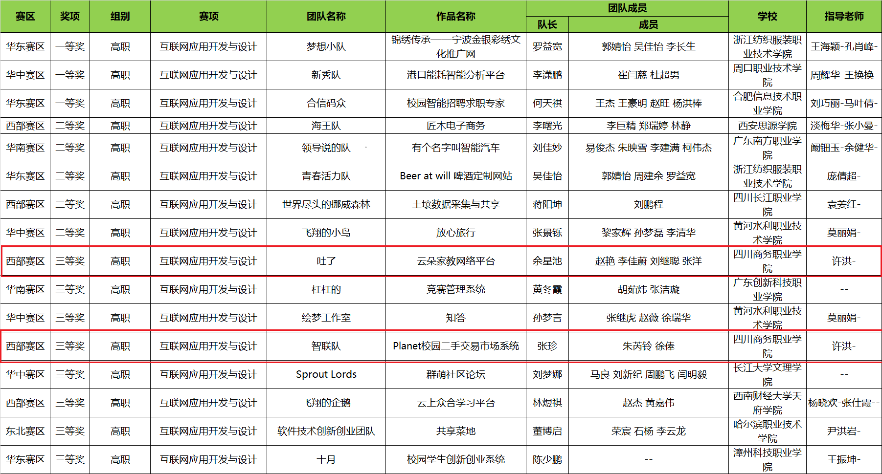 本次比赛发现杯大赛分设“互联网应用开发与设计” 、“网络营销技能”、“艺术设计”、“大数据”、“智慧数链财经”和“人工智能六个赛项,每个赛项分设本科组(含本科以上)和高职组。经过前期报名、初赛评审、以及区域赛等多个环节,最终开元官网信息技术系有2支参赛队伍经过激烈角逐,脱颖而出,斩获了高职组“互联网应用开发与设计”西部赛区三等奖。这是开元官网首次在这样级别的赛事中获奖。