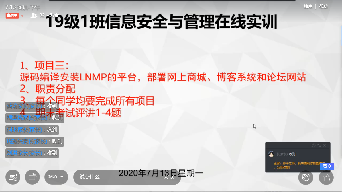非常时期,非常体验!本次线上实训师生之间隔着屏幕的交流与互动,充分展示了我系19级校企共建专业学子良好的精神风貌,通过实训不仅帮助大家巩固了专业课堂所学,还提高了实践操作能力,希望同学们能在未来专业领域内敢于攀登,奋力前行,实现质的飞跃!加油吧!少年!