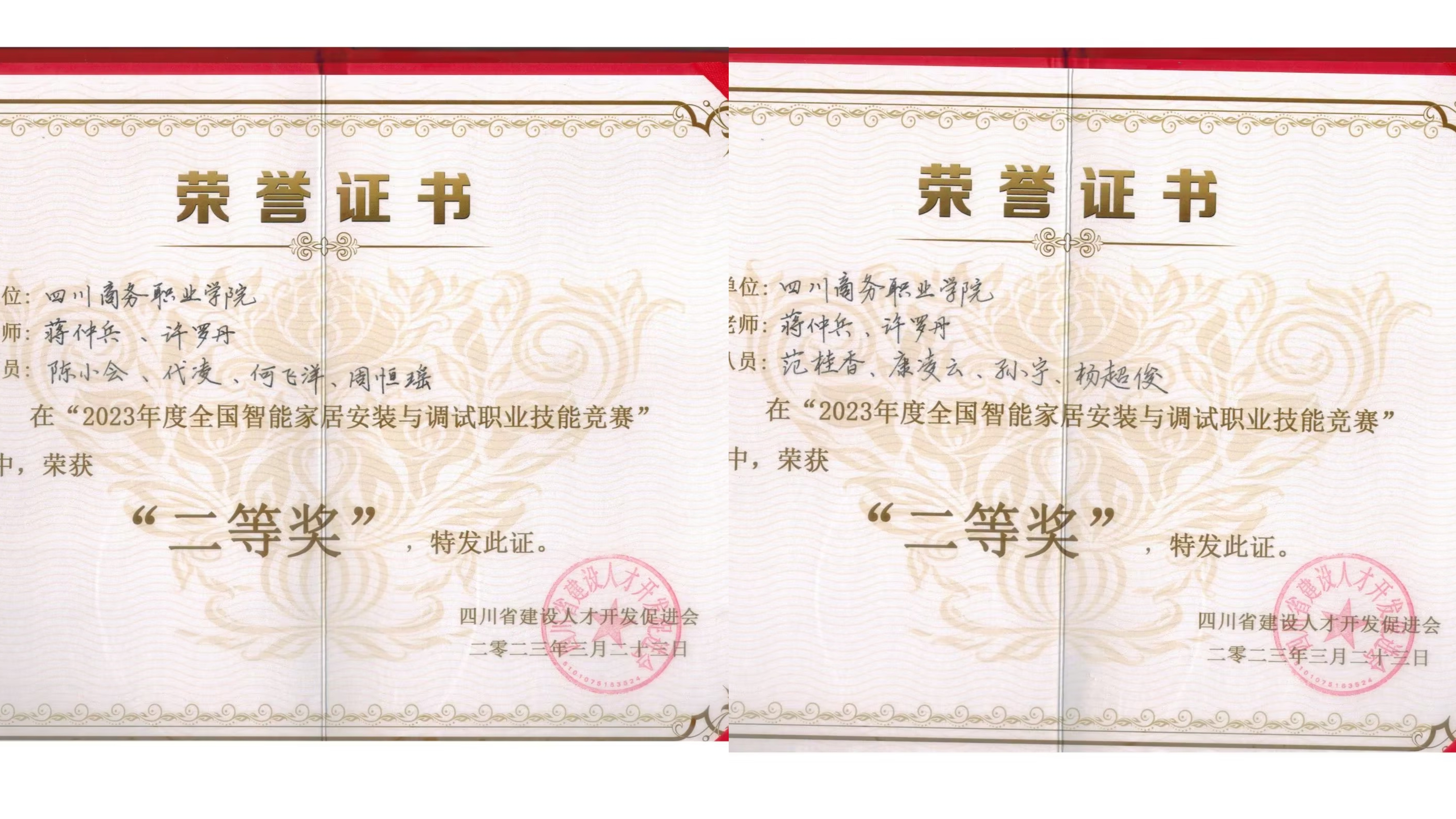 在3月23日结束的由四川省建设人才开发促进会主办、成都工业职业学院承办的“2023年度全国智能家居安装与调试职业技能竞赛”中,开元官网信息技术系应用电子技术专业负责人蒋仲兵老师指导的2支代表队均获团体二等奖,这是应用电子技术专业学子首次参加此类比赛。