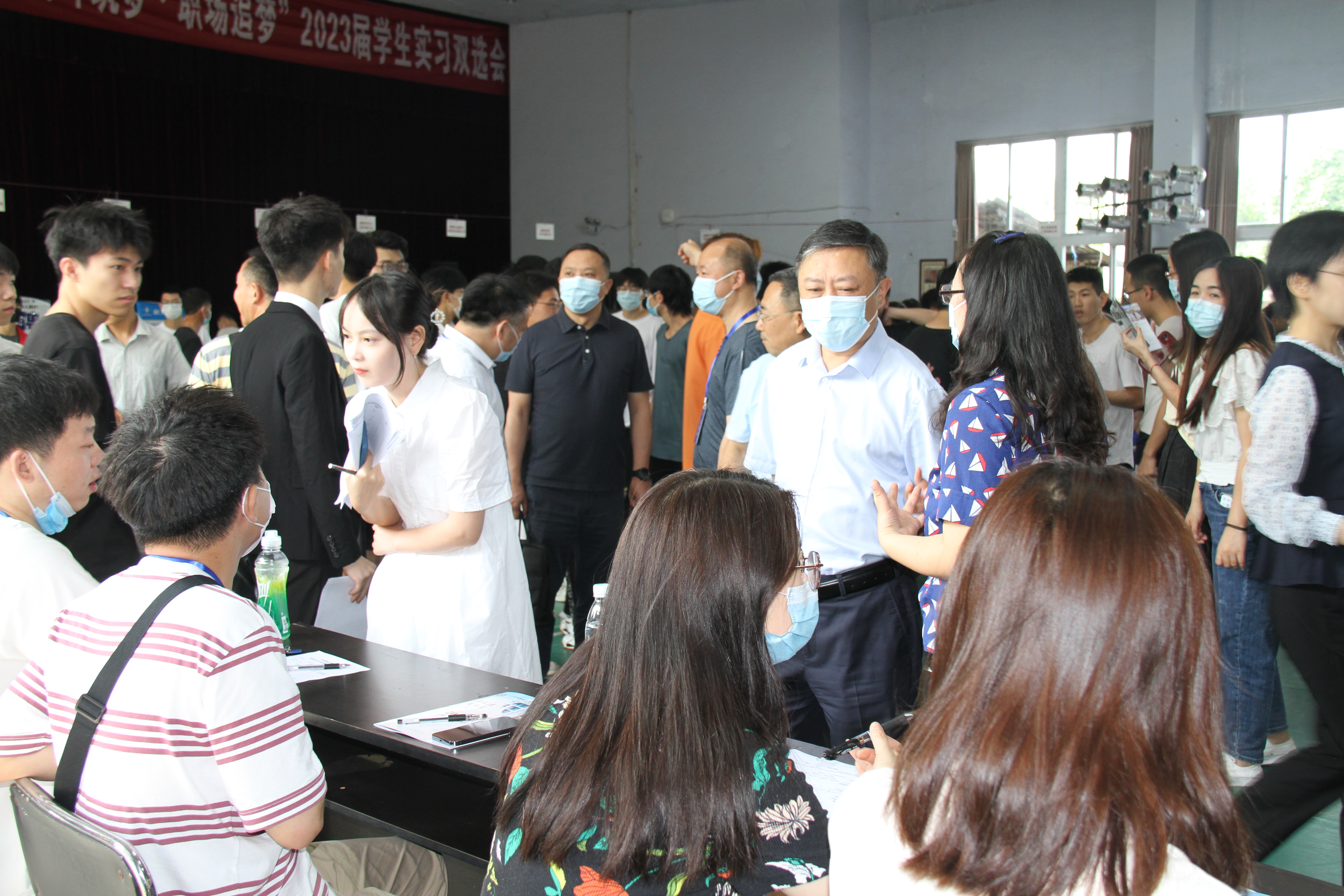 学院党委书记唐柯到现场慰问招聘企业,感谢企业为学院人才培养做出的努力,同时勉励莘莘学子,希望他们找准定位,做好规划,并祝愿大家都能找到心仪的实习单位。